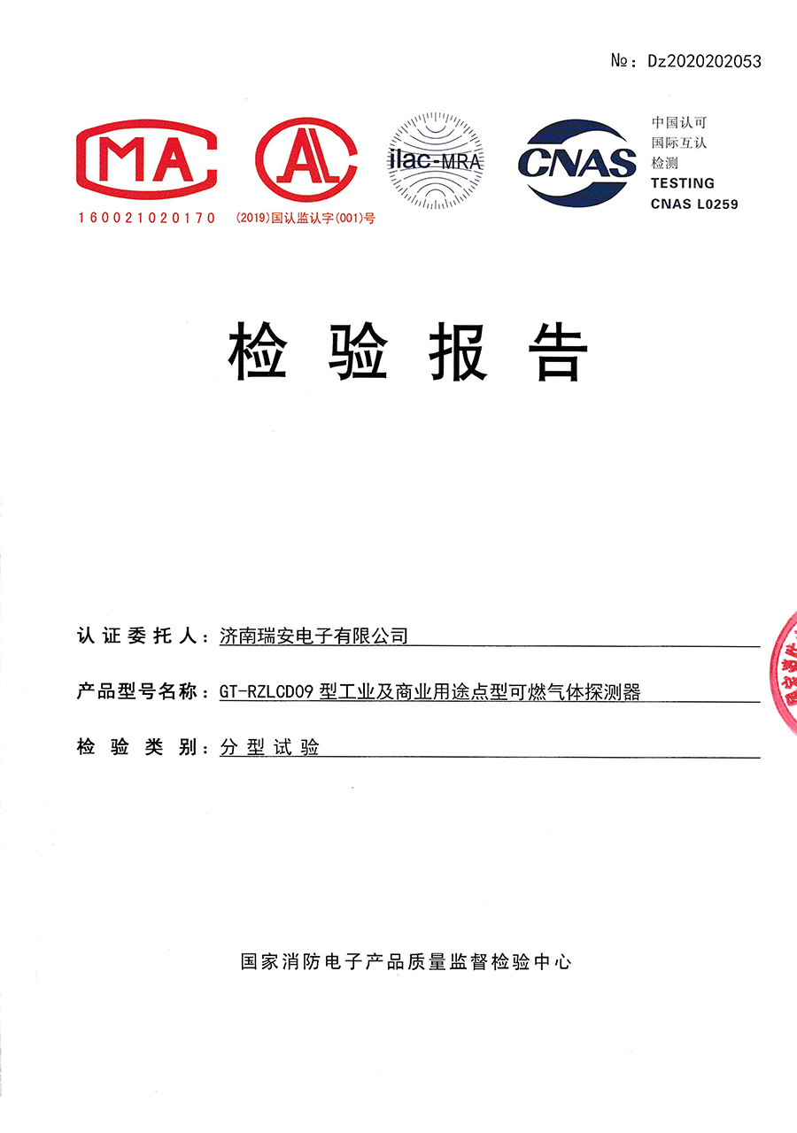 GT-RZLCD09氣體探測器檢驗(yàn)報(bào)告